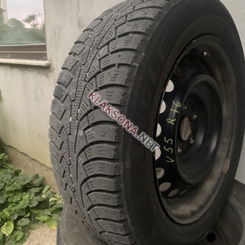 Продам комплект железных дисков с колпаками и резиной. 2 колеса отличных, 2 немного бьют. Размер 205.60.16, разболтовка 5*114.3.